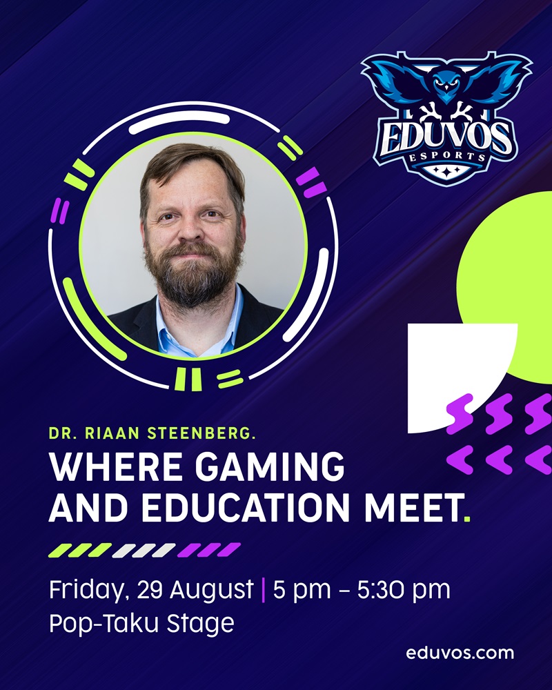 On Friday, 29 August from 17:00 to 17:30, Dr Riaan Steenberg will join a panel entitled, “Where Gaming & Education Meet” along with Jaco Sauer (Co-Founder and GM of RGB Gaming) and Robert Njawaya (Eduvos & esports alum) to discuss the impact of esports and gaming on skills development and career readiness.